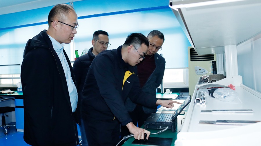 2024年1月10日,廣東省特種設(shè)備檢測(cè)研究院順德檢測(cè)院一行蒞臨我司參觀指導(dǎo),先后參觀了我公司無(wú)塵車間、實(shí)驗(yàn)室等,對(duì)我公司自主研發(fā)的無(wú)線式磁粉探傷儀、管道磁粉探傷儀、角焊縫磁粉探傷儀、腐蝕測(cè)厚機(jī)器人及聯(lián)合中國(guó)石油大學(xué)(華東)共同研發(fā)的ACFM交流電磁場(chǎng)檢測(cè)儀等設(shè)備進(jìn)行性能測(cè)試,均達(dá)到預(yù)期效果,并對(duì)我公司研發(fā)、生產(chǎn)及售后能力給予高度肯定。